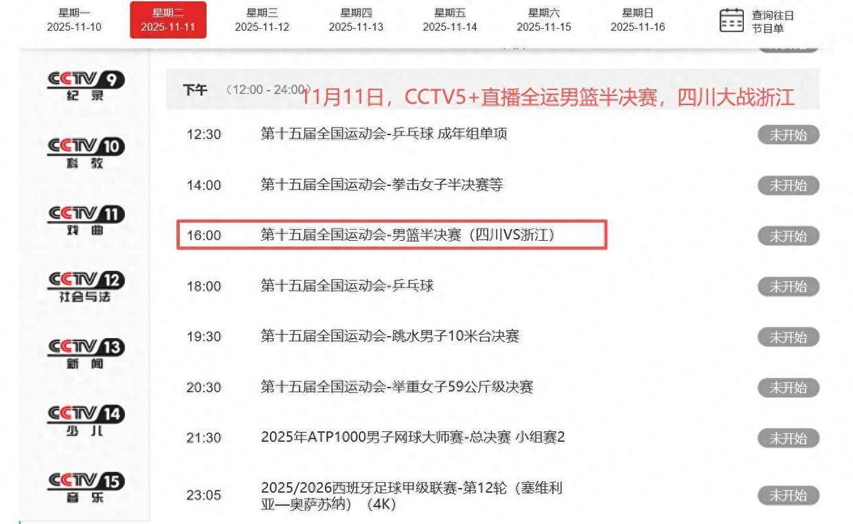 为了让全国观众能够第一时间见证这两场精彩赛事,中央电视台体育频道已精心安排直播计划。CCTV5频道将从下午四点开始,全程直播四川与浙江的比赛;而备受瞩目的辽粤大战,则将于晚上七点半在CCTV16奥林匹克频道进行现场直播。届时,亿万球迷将通过电视屏幕,共同感受这两场巅峰对决带来的激情与震撼。