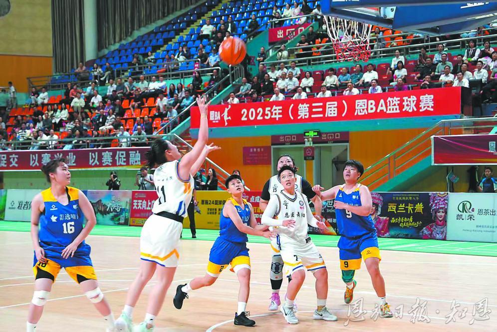 更令人惊喜的是,赛事IP本身催生本土体育产业从无到有、由弱变强。准者体育负责人透露,印有“恩BA”标识的专属篮球销量突破5000个,定制球服热销超过8万套,全年赛事相关总收益突破千万元。本土创业青年姚竞创办的“星耀体育”,凭借服务恩BA迅速成长,团队从3人扩展到30余人,业务范围从赛事执行延伸到体育培训、场馆运营,成为“体育+”新经济的一颗新星。