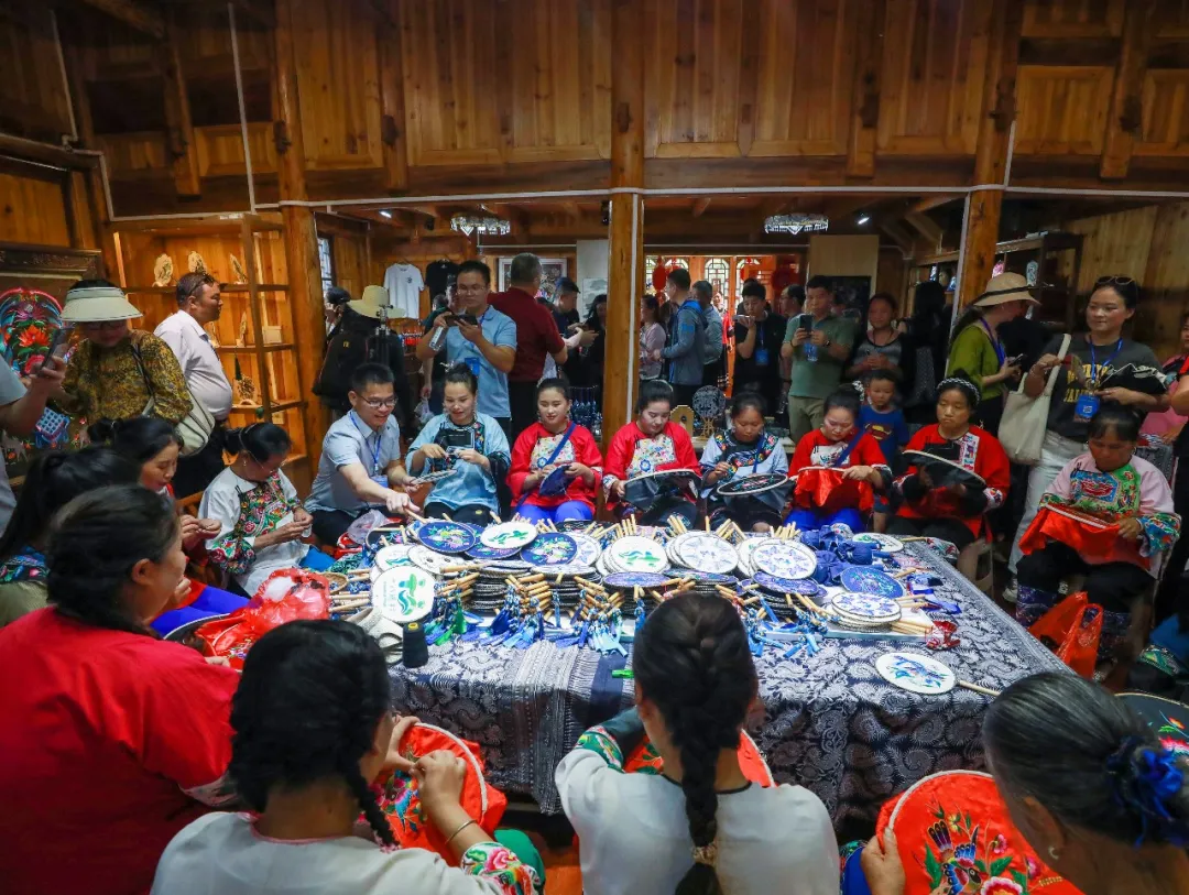 现在,村里像石春英一样不用外出打工的绣娘已有54位。绣娘们经常凑在一起,笑着唱:“带着娃,绣着花,养活自己又养家。”苗绣产业一年比一年好,每年能为村集体经济增收20万元以上。